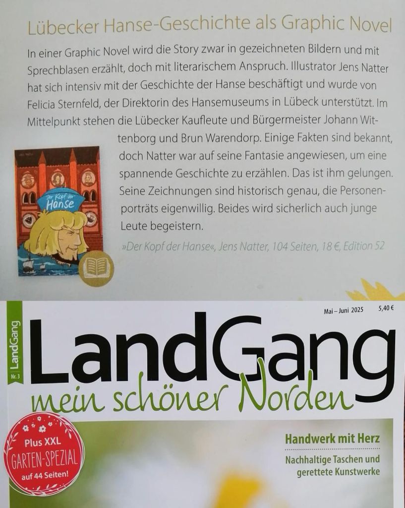 Noch einmal tolle Pressemeldungen zu meiner Hanse Graphic Novel in den brandneuen Ausgaben von Spiegel Geschichte und Landgang: