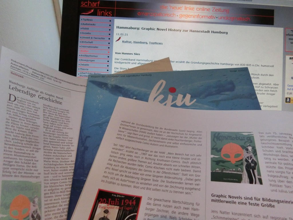 Klar, bei den ganzen positiven Rezensionen gibt es auch mal krititsche Töne. Ein Comicmagazin hatte jedoch HAMMABURG einen ziemlich lapidaren Totalveriss verpasst. Dem widerspricht nun der bekannte Comickritiker Andreas Platthaus von der Frankfurter Allgemeinen Zeitung : https://blogs.faz.net/comic/2021/01/18/geschichtsverstaendnis-braucht-geschichten-1679/