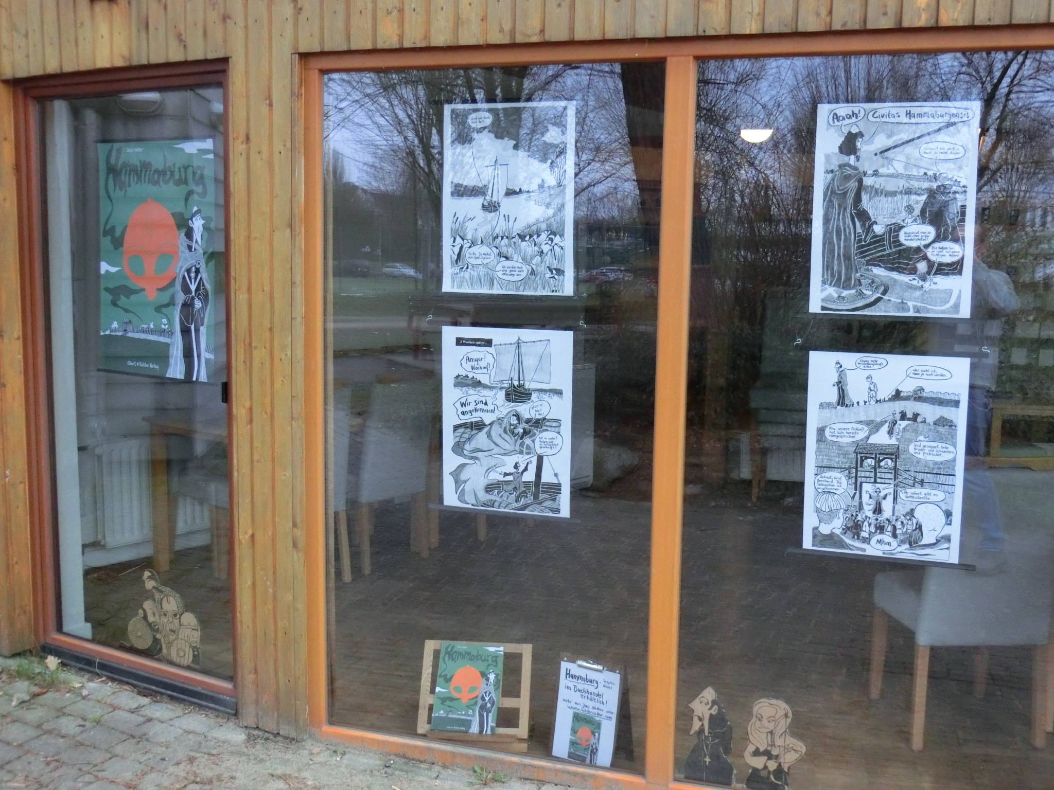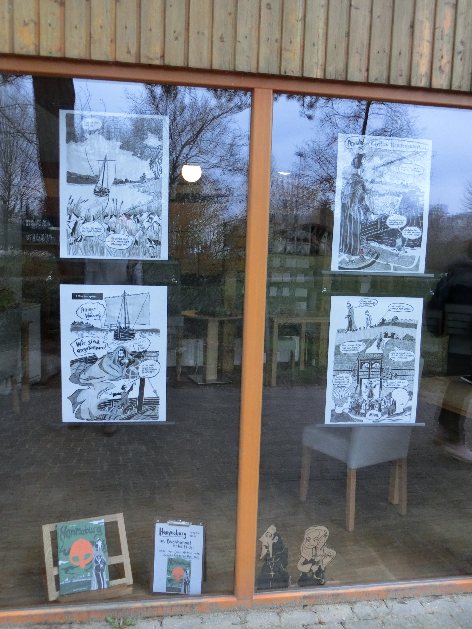 Das Bürgerhausin der Lenzsiedlung verschönert in Lockdownzeiten seine Fenster mit Exponaten verschiederner Künstler/-innen. Einen Teil der Fenster belegen die nächsten Wochen nun auch Bilder aus meinem HAMMABURG-Comicbuch.