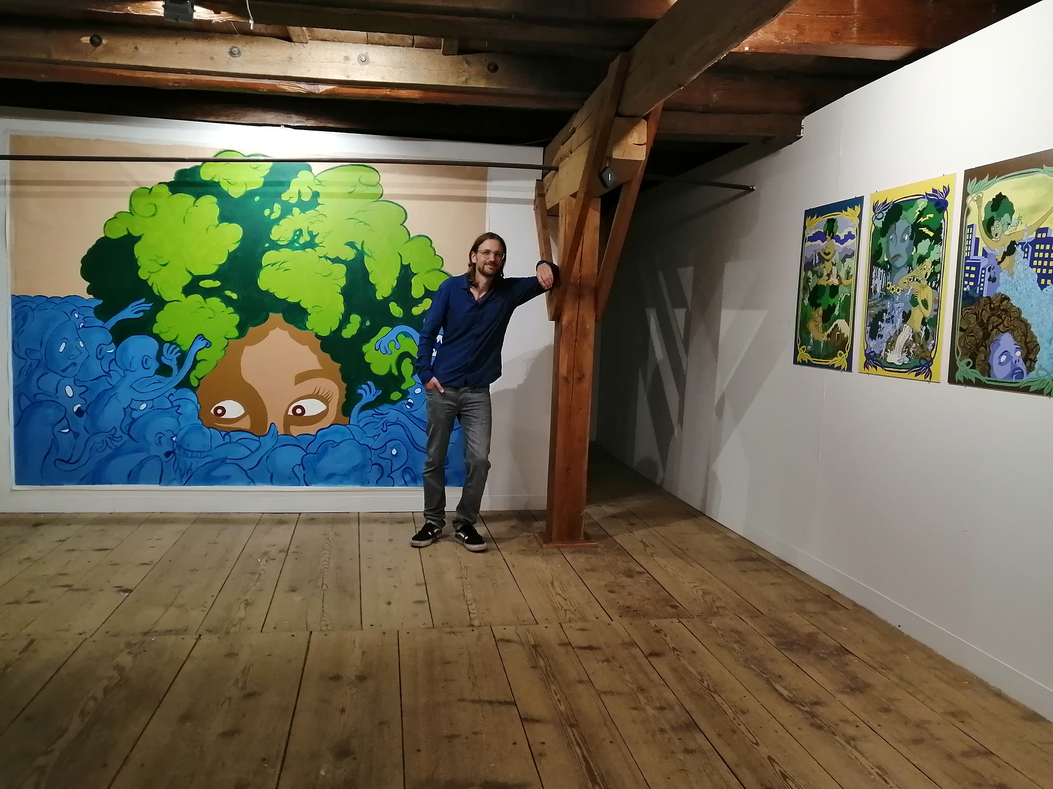 Eine tolle Zeit mit Künstlern aus Tschechien und Deutschland liegt hinter mir. Eine Woche lang arbeiteten wir zum Thema „Mutter Natur“an großformatigen Leinwänden, die als Aufhänger für unsere zuvor eingereichten Comicstories dienten.