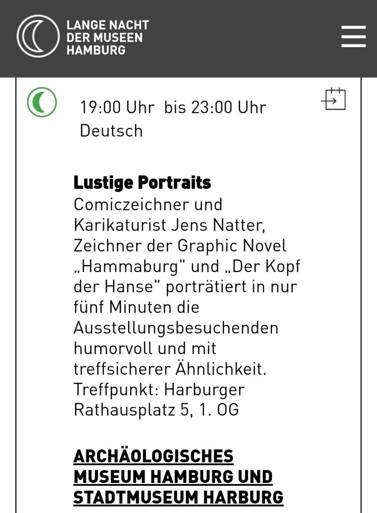 Ich bin als Karikaturist mit dabei am 31.8.25 beim Stadtteilfest Wandsbek am Stand der Hamburger Bücherhallen und auf dem Norden Festival in Schleswig am 4.9. und 5.9.25. Auf dem Norden Festival werde ich auch wieder ein paar meiner Schlei Wimmelbücher und den „Kopf der Hanse“ Comic zum Signieren dabei haben.